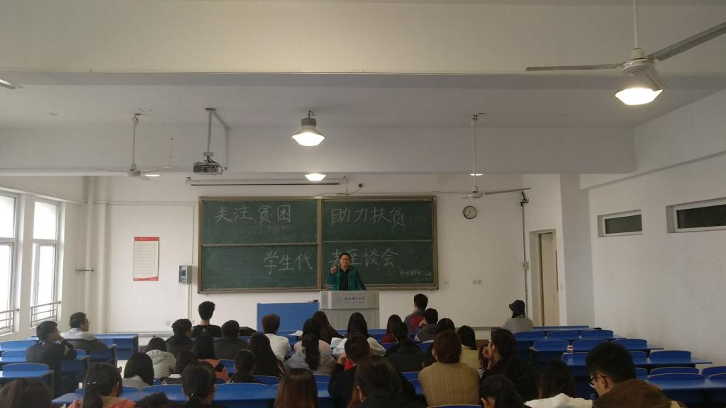 随后,各年级学生干部结合实际情况,从学生的角度说出了自己对扶贫工作的看法。2015级英语师范班团支书陈娟说到:“扶贫工作的落实对贫困同学起到了不可忽视的作用,我们作为学生干部也应该给予他们更多的关心和帮助”。2016级西语二班团支书毛心仪表示,近年来,我国的扶贫开发工作取得了举世瞩目的成就,这与党和政府出台的一系列扶贫攻坚政策是密不可分的,并表示自己要努力学习,为国家未来的建设贡献自己的力量。最后,江洋对同学们提出了希望,希望他们在班级积极宣传,以自己的实际行动来为扶贫工作做出贡献。