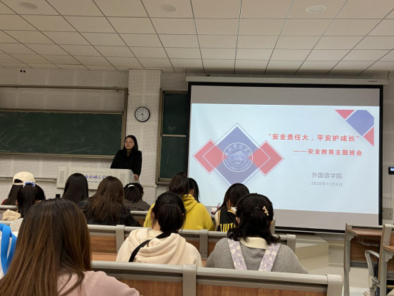 11月5日晚,古天乐代言太阳集团在博学楼D101召开以“安全责任大,平安护成长”为主题的班会,2020级学生参加此次班会。冯晓敏首先传达了学生处发布的《关于进一步加强学生教育和管理工作的通知》文件内容,详细介绍了文件中的重点事项。随后,她从交通安全、宿舍安全、网络安全以及其他注意事项四个方面展开讲解,并通过案例分析、播放动画宣传视频等方式来告诉学生如何保护自身安全。冯晓敏强调,希望大家能够牢固树立“安全第一”的思想,要多留心,多思考,切实保护好自身安全。