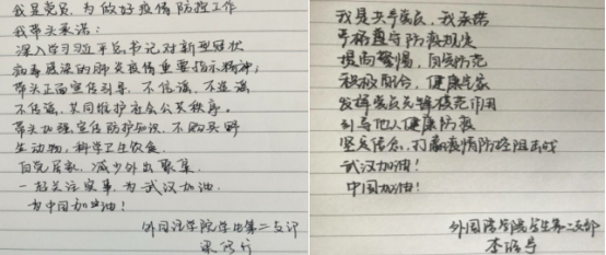 疫情就是命令,防控就是责任。主题党日活动上,在支部书记周老师的带领下,全体党员再次深入学习了习近平总书记关于疫情防控工作的系列重要指示批示精神、《省委教育工委号召全省教育系统基层党组织和党员在防控疫情阻击战中进一步发挥战斗堡垒作用和先锋模范作用》、《合肥师范学院“我是党员,我带头”——致全院各级党组织和全体党员的倡议书》文件精神和疫情防控有关知识。随后,支部党员进行承诺,“我是党员,我承诺:不聚会,少出门,勤洗手,从我做起。”“我是党员,我承诺:不信谣,不传谣,不造谣。”“武汉加油!中国加油!”。各位党员铿锵有力地作出自己对防抗疫情工作的个人承诺,饱含深情地表达对武汉和祖国的祝福。时刻提醒自己使命在肩,切实发挥党员先锋模范作用,担当作为、冲锋有我,不造谣、不传谣、不信谣,坚定信心、齐心协力,坚决打赢疫情防控阻击战!活动最后,支部共同倡议每位党员通过“学习强国”每周看一部红色电影、每月看一本红色书籍并线上线下积极交流分享体会,不断加强自身的思想政治建设。