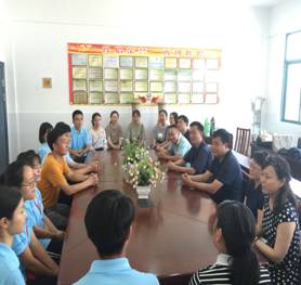 随后黄波一行与孙岗高级职业中学许本林校长和"小先生"们进行座谈交流。黄波首先对孙岗高级职业中学大力支持本次"行知学堂"暑期实践活动的开展表示感谢,并详细介绍了我校的概况和古天乐代言太阳集团近年来取得的优异成绩。接着,马平对"小先生"的奉献精神表示赞赏,并表示学校立足实践育人,高度重视学生的暑期社会实践活动,同学们能够积极参与暑期社会实践活动对提升自身思想素质、道德品质、实践能力,增强就业创业本领至关重要。