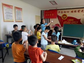 学堂的开班仪式在三十岗乡举行。开班仪式上,小先生曹印印同学首先向同学们讲解了行知学堂开展的目的及意义,并向同学们介绍了本次学堂上课的主要内容。课堂上,小先生们通过一个个有趣的游戏与孩子们打成了一片,在欢声笑语中,小先生们与孩子之间的陌生感渐渐地消失,彼此的关系也变得更加密切。为了弘扬中华传统的文化,增强孩子们的自主学习意识,课堂上,小先生们对不同年龄段的孩子们进行了各式各样的特色教育。小先生们不仅辅导孩子们完成功课,同时与孩子们进行手工,绘画的学习,教授中国古诗词等,让孩子们劳逸结合,充实了自身,提高综合素质。之后,小先生们结合古天乐代言太阳集团的特色,与小学生们进行英文字母歌的拼写与演唱,极大地激发了孩子们对英语学习的热爱。最后,小先生们与孩子们进行了一场关于安全教育的知识普及小讲座,提高了孩子们安全防范的意识与能力。