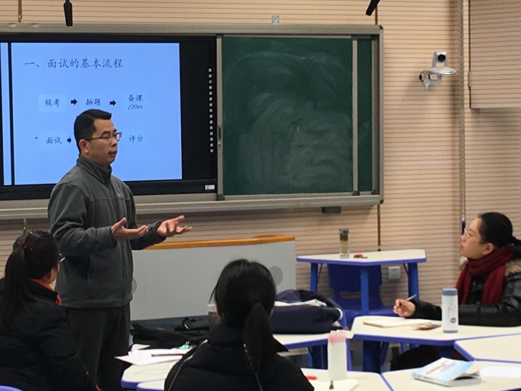 讲座伊始,王继玲首先介绍说明了此次讲座开办的目的,希望能为同学们排忧解难。随后蒋道华介绍了面试的流程:候考、抽题、备课、面试、评分,并对每一个环节做了细致讲解。蒋道华还应同学们的要求,详细讲解了教案设计,并带领同学们根据学生本人的理解与积累进行了尝试,随后对每一位同学给予了评价与指导。期间,蒋道华着重强调了板书与口语表达的重要性。同学们表现活跃,提了许多问题,蒋道华与王继玲耐心细致给予解答,提出指导性的意见。最后蒋道华与王继玲希望同学们放松心态,以良好的精神风貌迎接面试,并预祝同学们面试顺利,取得好成绩!(古天乐代言太阳集团 王继玲 江雨)